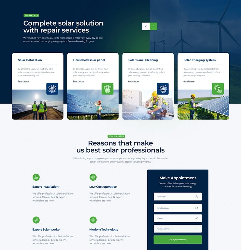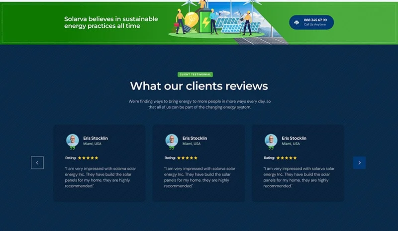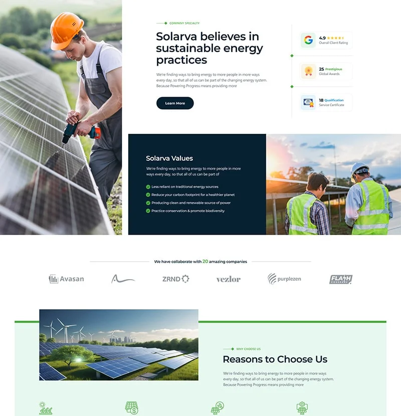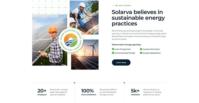 We are Solarva. It is designed as a modern & functional website for Solar Panel & Renewable Energy businesses.
